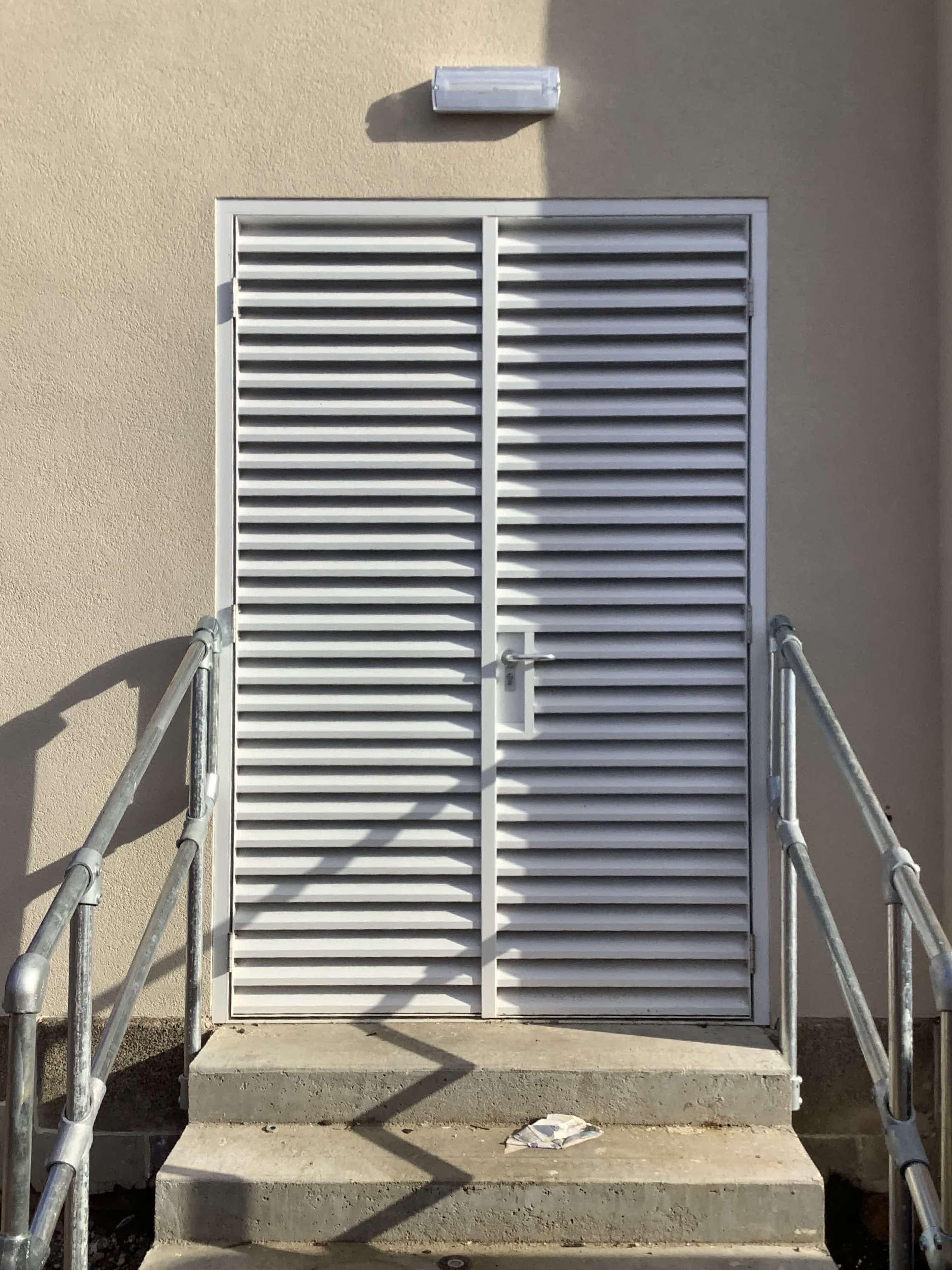 Our louvred doors are designed to provide secure and ventilated access to plant rooms, rooftop enclosures, and other restricted areas. Manufactured to match the surrounding louvre system, they offer continuity in appearance and airflow, while also meeting the required strength, durability, and access specifications.