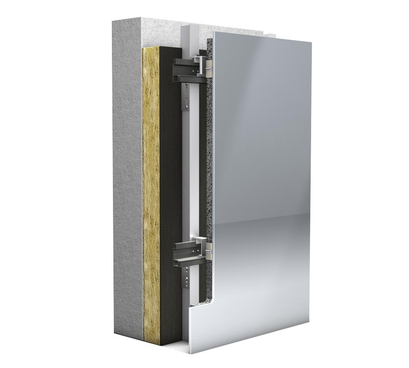It consists of an outer cladding layer that deflects rainwater and an inner wall with insulation. The ventilated cavity allows air to circulate, helping to prevent moisture buildup and improve energy efficiency.
