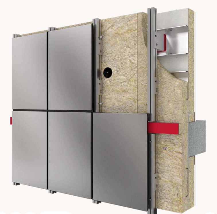 It consists of an outer cladding layer that deflects rainwater and an inner wall with insulation. The ventilated cavity allows air to circulate, helping to prevent moisture buildup and improve energy efficiency.